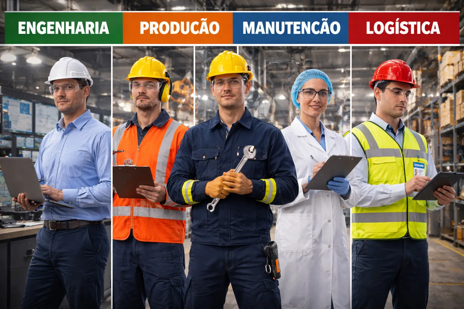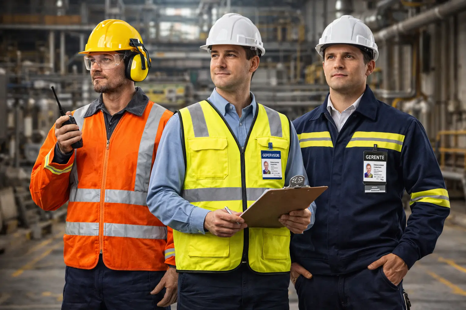 - Equipe de Manutenção: Cores que contrastam com o ambiente, em materiais mais resistentes e com elementos de segurança visível.